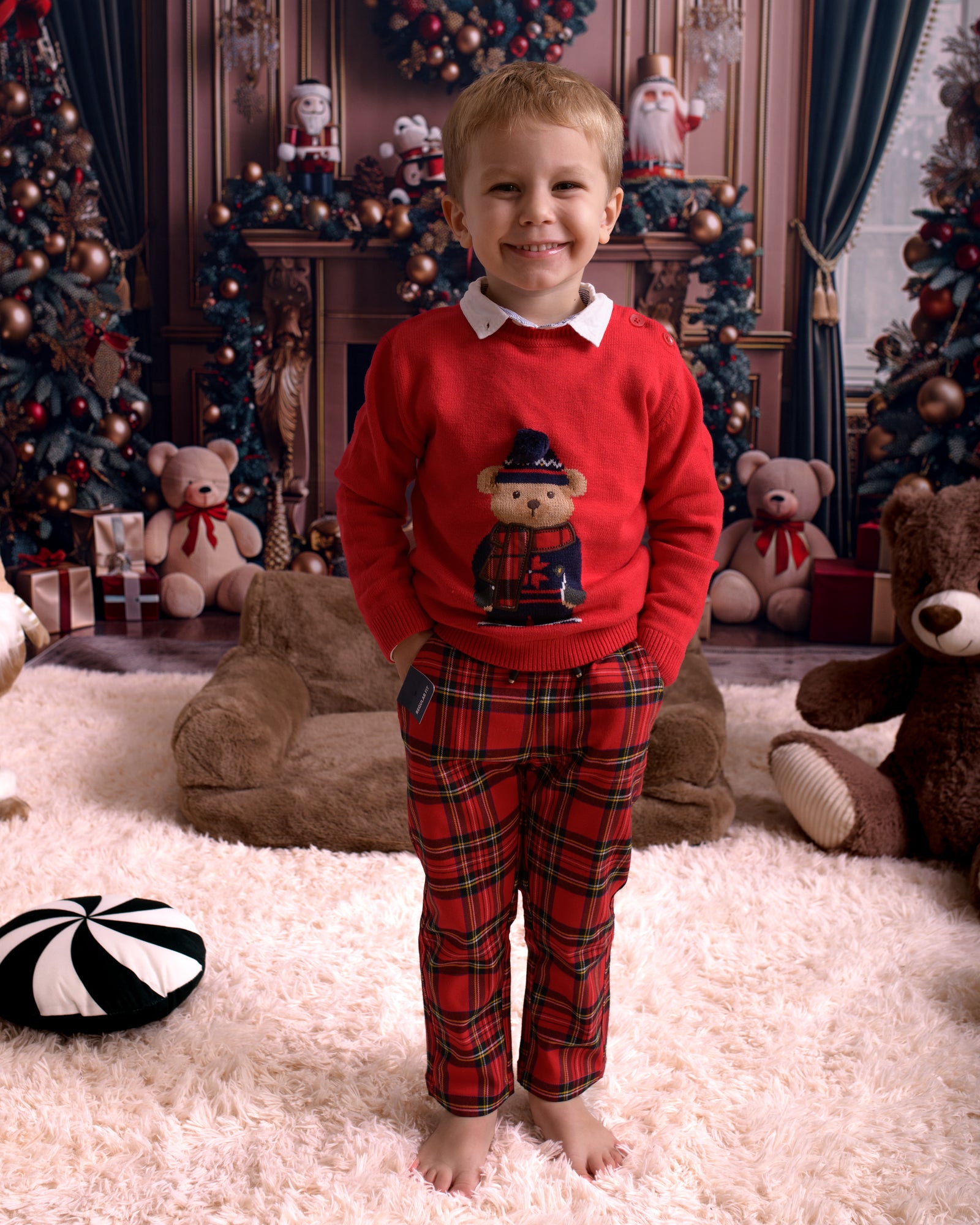 Completo natalizio composto da maglione e pantalone tartan